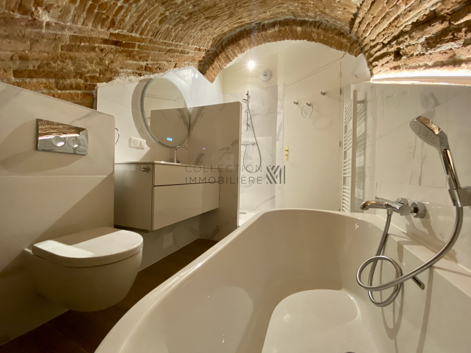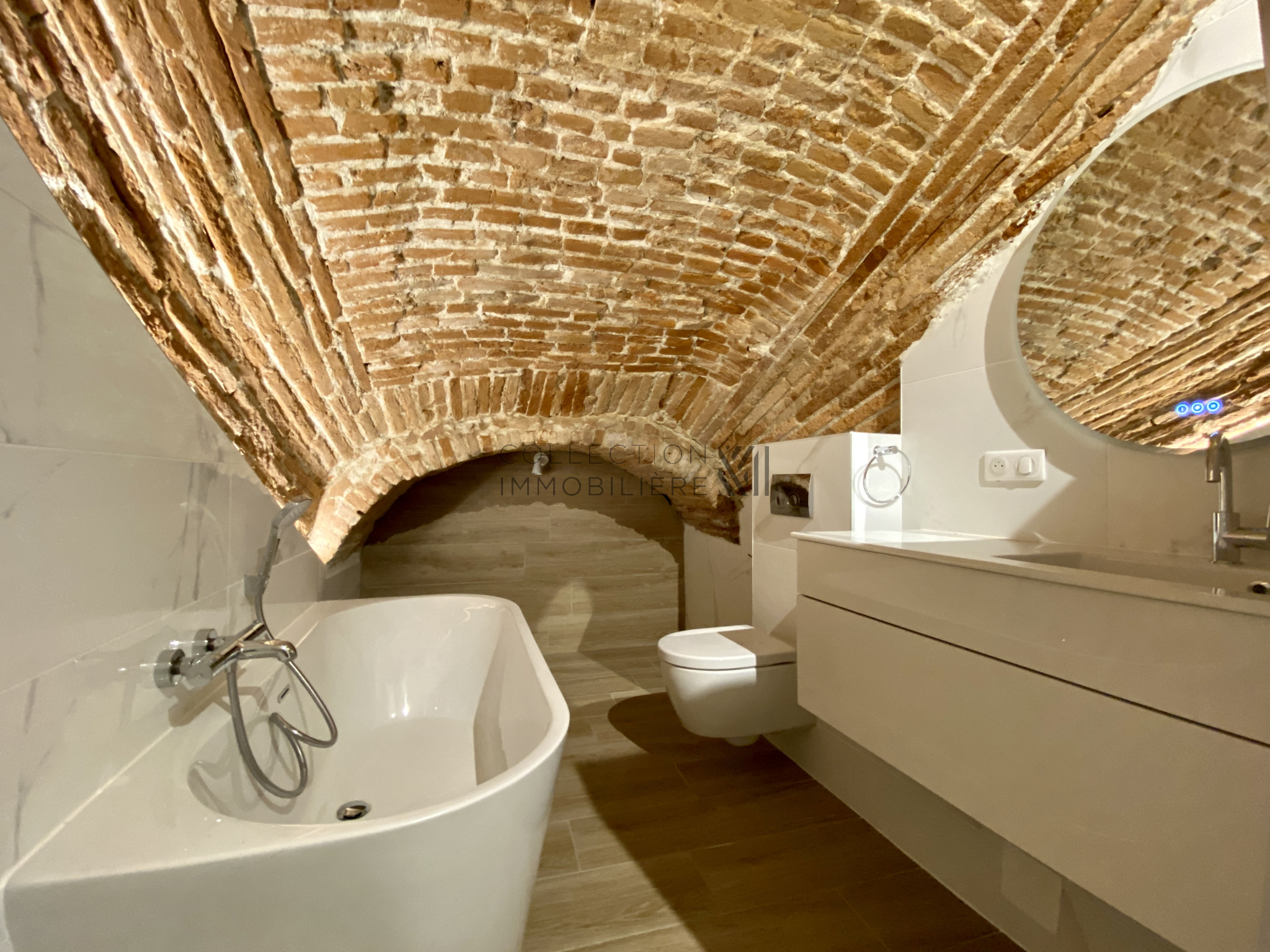 Cet appartement atypique développant 121,18m2 au sol dont 97,47m2 habitables a été entièrement rénové tout en ayant su garder le charme de l'ancien (sol d'origine, poutres, briques toulousaine, belle hauteur sous plafond...).