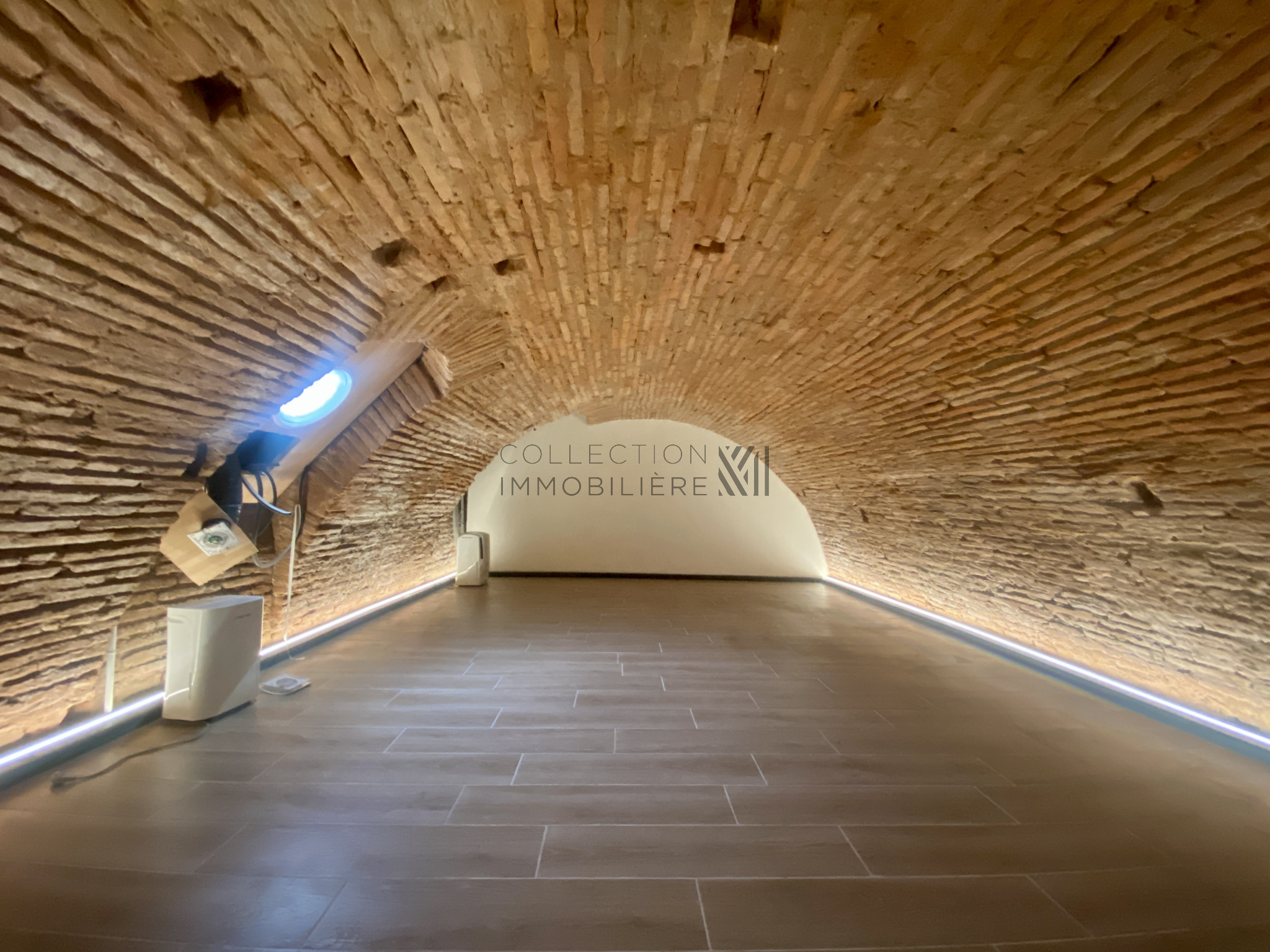 Ce dernier comprend une entrée ouvrant sur une incroyable pièce à vivre de 41,36m2 avec cuisine ouverte et équipée (plaques, hotte, four, régrérateur congélateur), un cellier, deux chambres avec placard dont une avec salle d'eau attenante, une magnifique salle de bain et douche nichée sous une voute en briques d'origine, et le tout complété par une superbe cave ventilée en sous-sol de 37,59m2 au sol pouvant faire office de bureau, salle de jeux, home cinéma...