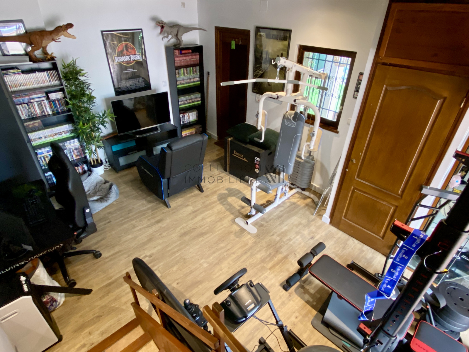 De plus, un grand bureau actuellement amménagé en salle de sport pouvant devenir une 4 ème chambre / suite parentale avec accès direct sur le jardin.
